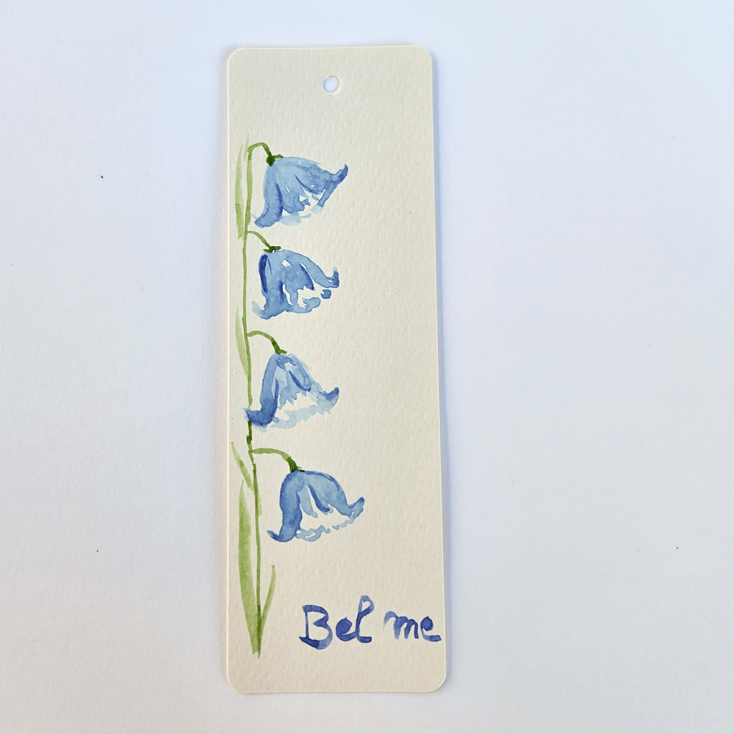 Handgeschilderde boekenlegger met Campanula en bel me boodschap