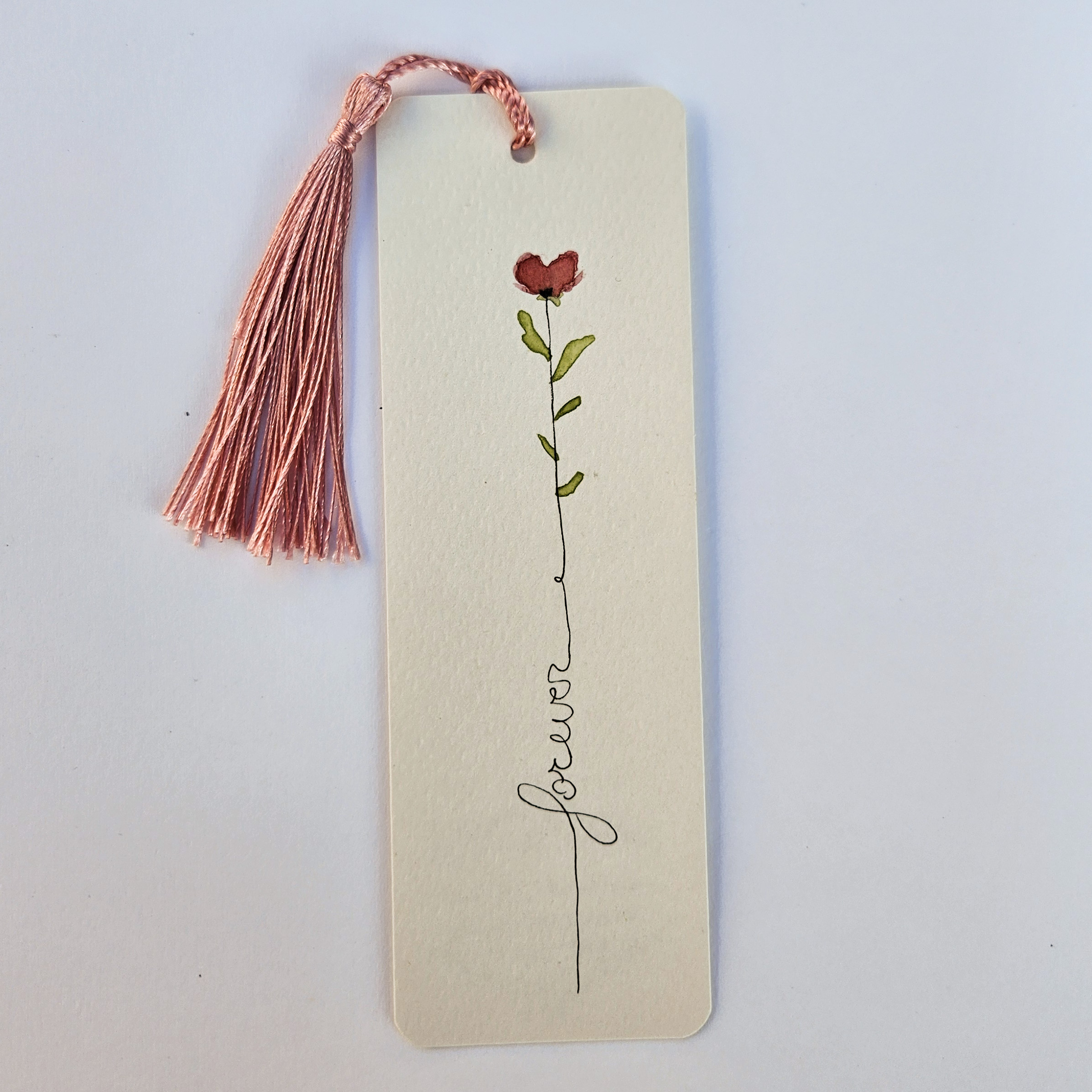 Boekenlegger met kwastje en tekst "forever"