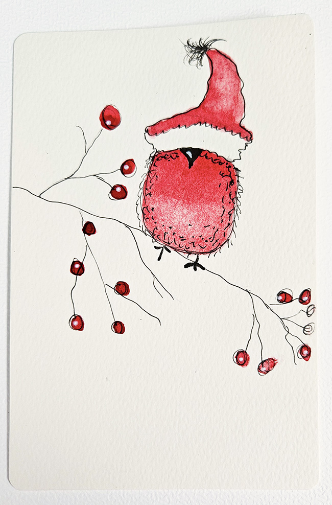 Elke kaart is met de hand geschilderd op stevig aquarelpapier, waardoor elk exemplaar uniek is. Perfect voor een originele kerst- of wintergroet, of om je huis feestelijk te decoreren.