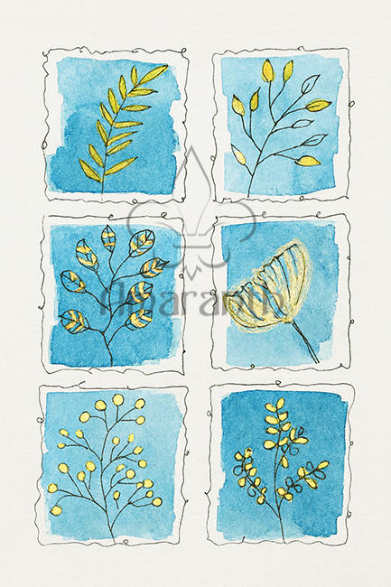 Breng een glimlach op iemands gezicht met deze unieke, handgeschilderde wenskaart! Deze kaart bestaat uit 6 kleine botanische illustraties, elk omlijst met een subtiele lijntekening en een rijke aquarel achtergrond. De fijne metallic verfdetails geven een warme, sprankelende touch – perfect voor elke gelegenheid.
