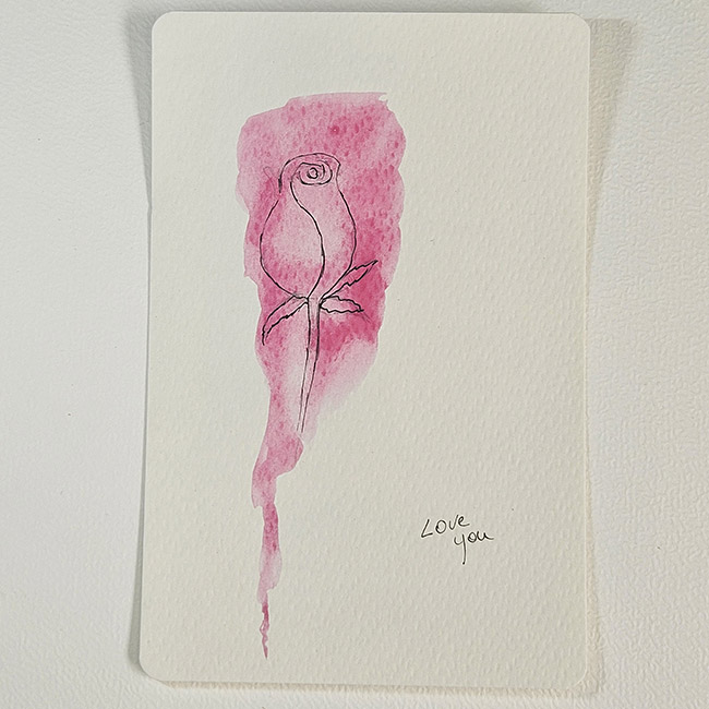 Deze handgemaakte kaart combineert fijne line art met zachte aquarelaccenten, een delicaat ontwerp dat spreekt in stilte.