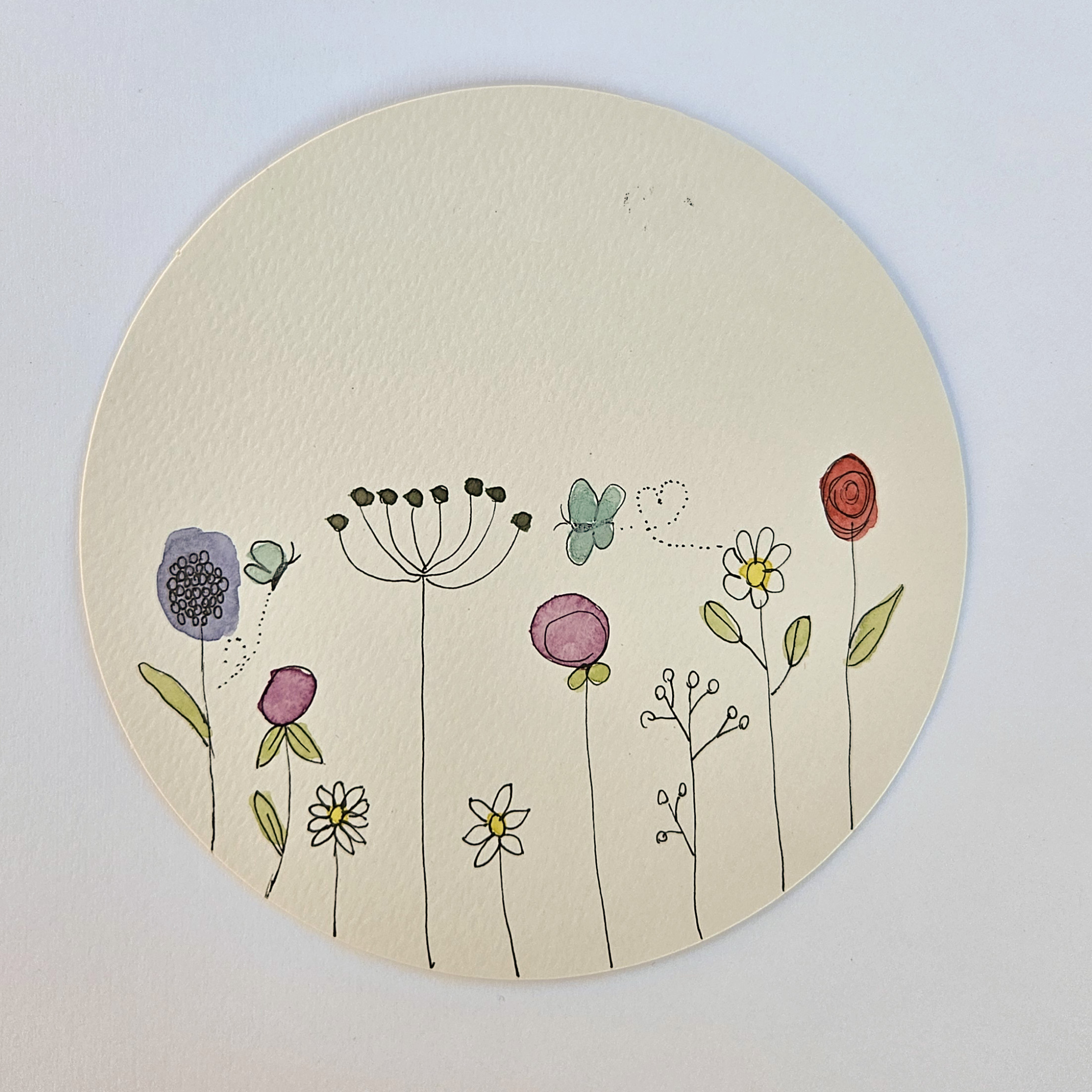 Deze handgemaakte kaart combineert fijne line art met zachte aquarelaccenten – een delicaat ontwerp dat spreekt in stilte.