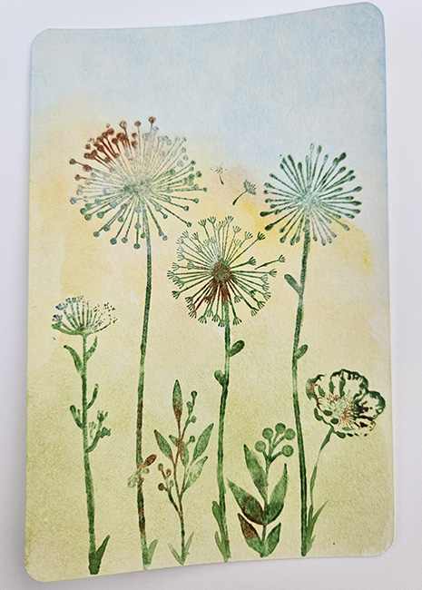Beide kaarten zijn geschilderd met aquarelverf en verfijnde stempeltechnieken, waardoor elk ontwerp een uniek karakter heeft. Perfect om iemand een fijne dag te wensen, te feliciteren of gewoon een warm, persoonlijk gebaar te maken.