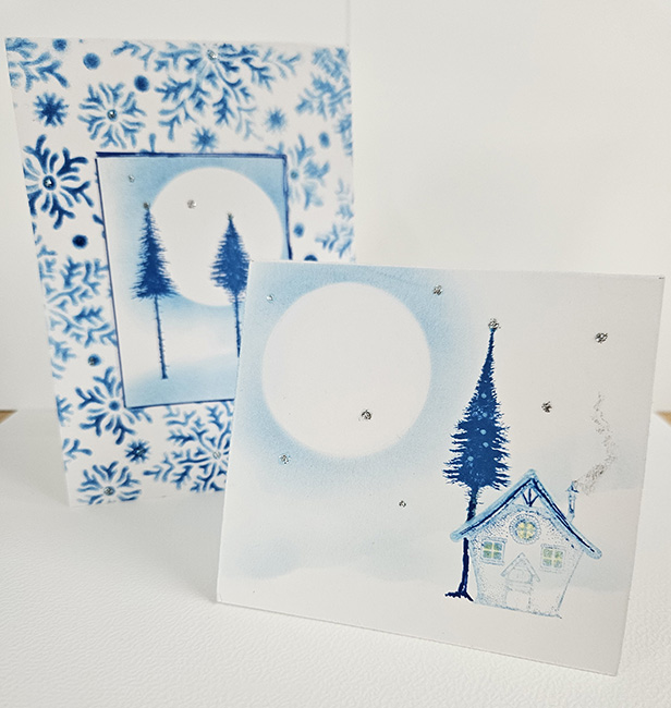 Set dubbele Winterse landschap kaarten Mini en Maxi.