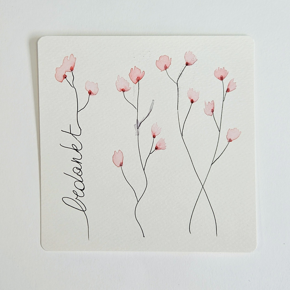 De aquarelachtergrond geeft een artistiek tintje aan de kaart, waardoor hij niet alleen een boodschap van dankbaarheid overbrengt, maar ook een visueel genot is. Het minimalistische ontwerp zorgt ervoor dat de boodschap centraal staat, zonder afleiding. Dit maakt het een ideale keuze voor iedereen die houdt van eenvoud en elegantie.
