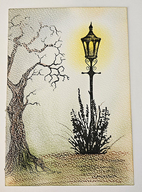Winter is coming! Bereid je voor op de magie van het seizoen met onze sfeervolle kunstkaart, perfect voor de winterliefhebber. Deze kunstkaart vangt de stilte van een winteravond in een prachtig geïllustreerd tafereel dat je meteen in de juiste stemming brengt. Stel je voor: een sierlijke, vintage straatlantaarn die een warme gele gloed over de omgeving werpt, terwijl een grillige, kale boom aan de linkerzijde het geheel een poëtische en mysterieuze uitstraling geeft. Het is een winterkaart die niet alleen een boodschap overbrengt, maar ook een gevoel van nostalgie en verwondering oproept.