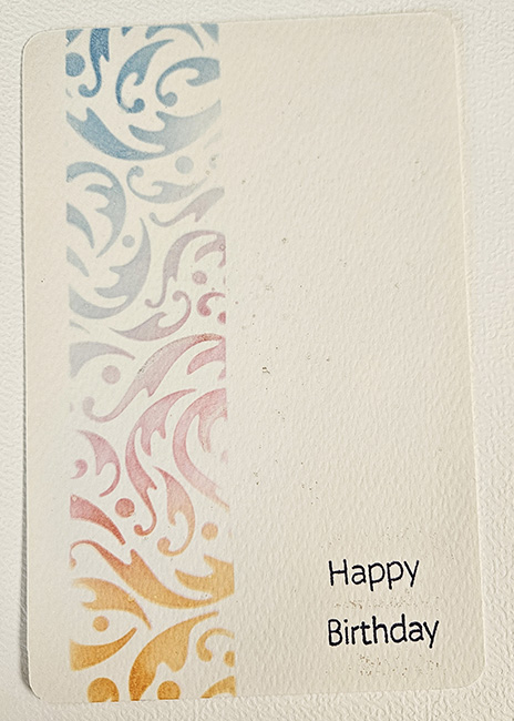Aan de rechterzijde van de kaart staat de tekst “Happy Birthday” in een eenvoudige, tijdloze typografie. De sobere lettering vormt een rustig tegengewicht voor het decoratieve patroon en maakt de kaart geschikt voor uiteenlopende leeftijden en gelegenheden. Hierdoor blijft de kaart veelzijdig en persoonlijk tegelijk.