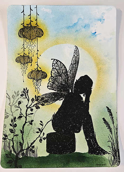 We hebben deze fairy kaart verder verrijkt met handgemaakte stempelafdrukken en aquarelverf, waardoor elke kaart een unieke mixed media creatie is. De combinatie van digitale en traditionele technieken geeft de kaart een bijzondere diepte en karakter, perfect voor elke gelegenheid. Of je nu iemand wilt verrassen met een verjaardagsgroet of gewoon een lief gebaar wilt maken, deze kaart is de ideale keuze.